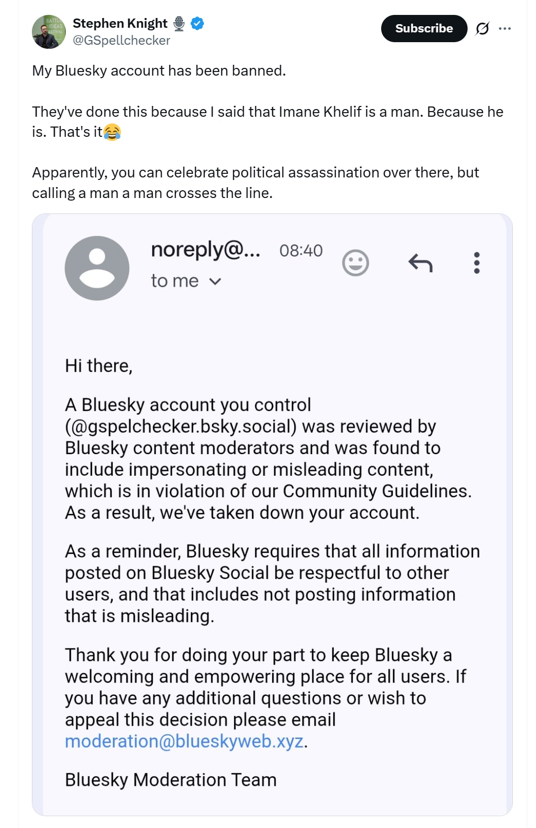 Bluesky, like old-school Twitter, is still a place where you can be banned by the admins for “misgendering” someone: